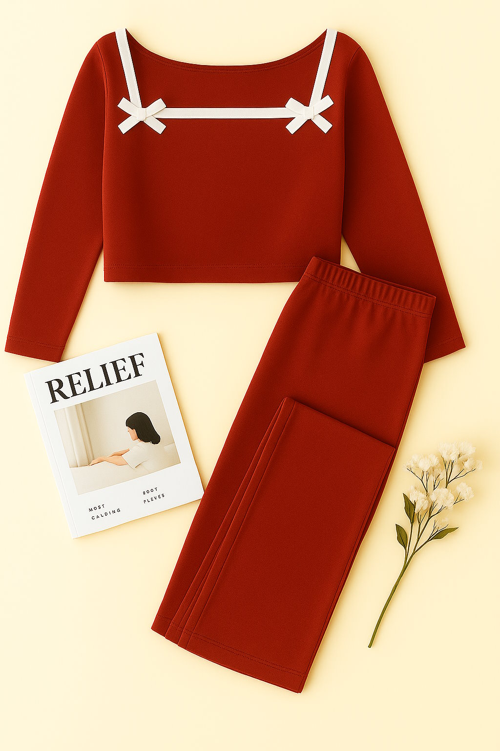 Pyjama ultra doux au design unique qui marie confort et féminité. Haut à manches longues orné de deux rubans délicats aux épaules, et pantalon taille élastique pour une coupe agréable. Idéal pour vos moments de détente à la maison ou pour les soirées cocooning. Disponible dans des couleurs modernes et élégantes. Un vrai coup de cœur à porter tous les jours.